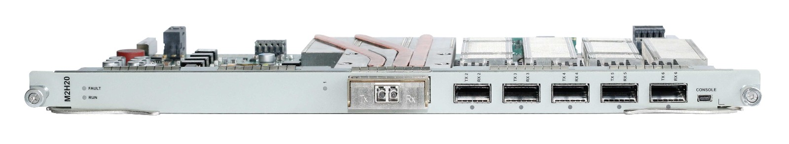 V2H20是一款高密度板卡式200G OTN Muxponder,它采用领先的芯片技术,全面支持国内和国际相关标准(如ITU-T G.709, G.798等),支持1个线路侧端口和5个客户侧端口,线路侧接口采用CFP2封装,支持100G和200G多种速率模式,客户侧接口采用QSFP28/QSFP+封装,支持100G、40G、4x10G三种速率模式。适用于城域汇聚和城域间的的光传输网络应用。