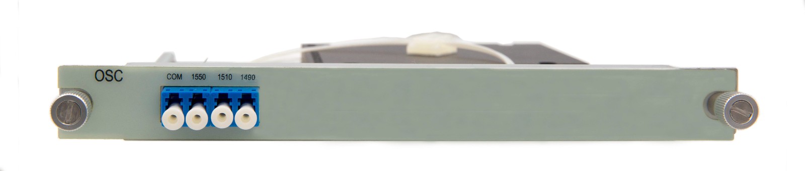OSC复用/解复用板卡是我司基于WDM波分复用光纤传输系统内的光监控通路OSC,又名带内网管(带内网管:指通信传输设备网络管理信号通过与该设备承载的其它信号传输的光纤内基于WDM(1510nm)波长传输,无需外置的E1或以太网通道传输),主要用于传输监控设备的网络管理信号,在双纤双向传输系统中通常使用1510nm做为OSC传输波长,在基于单纤双向传输的系统中,通常采用1490nm与1510nm配合使用,在特殊应用场景,OSC监控通路不满足使用时,可扩展至C(1528~1565nm)波段以外的其它CWDM波长使用。